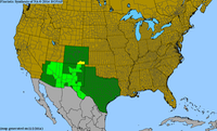 Its range within the United States is limited, as shown on the BONAP map to the right. Light green indicates that the species is native to, and common within, the county indicated. In Mexico, it is found as far south as Oaxaca.
